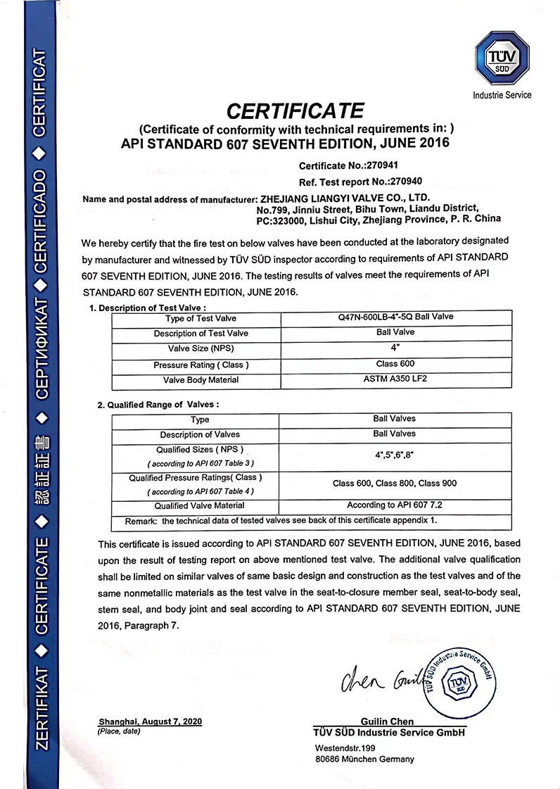 Lyv® boli ocenené medzinárodnými autoritatívnymi organizáciami za svoje riadenie kvality a výkonnosť produktu, ako napríklad ISO9001 , API607, API6FA, API-6D, CE.